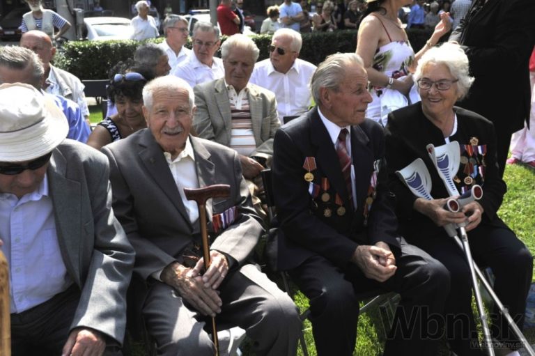 Sprava: Priami účastníci SNP Anna Bergerová a Ján Chudík počas spomienkového a pietneho aktu kladenia vencov pri príležitosti 71. výročia Slovenského národného povstania. Bratislava, 27. august 2015. Foto: SITA/Ján Slovák