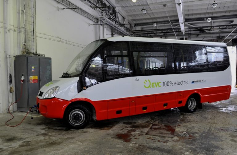 Elektrobus spoločnosti ROSERO počas prezentácie vo vozovni Dopravného podniku Bratislava. Bratislava, 12. február 2014. Foto: SITA/Ján Slovák