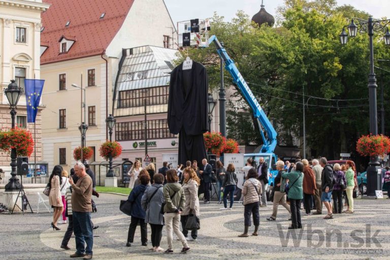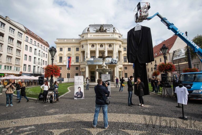 Pohľad na nadrozmerný oblek, ktorý ušila spoločnosť Ozeta a ktorý sa usiluje o zápis do Guinessovej knihy rekordov ako najväčší oblek na svete. Bratislava, 2. október 2014. Foto: SITA/Jozef Jakubčo