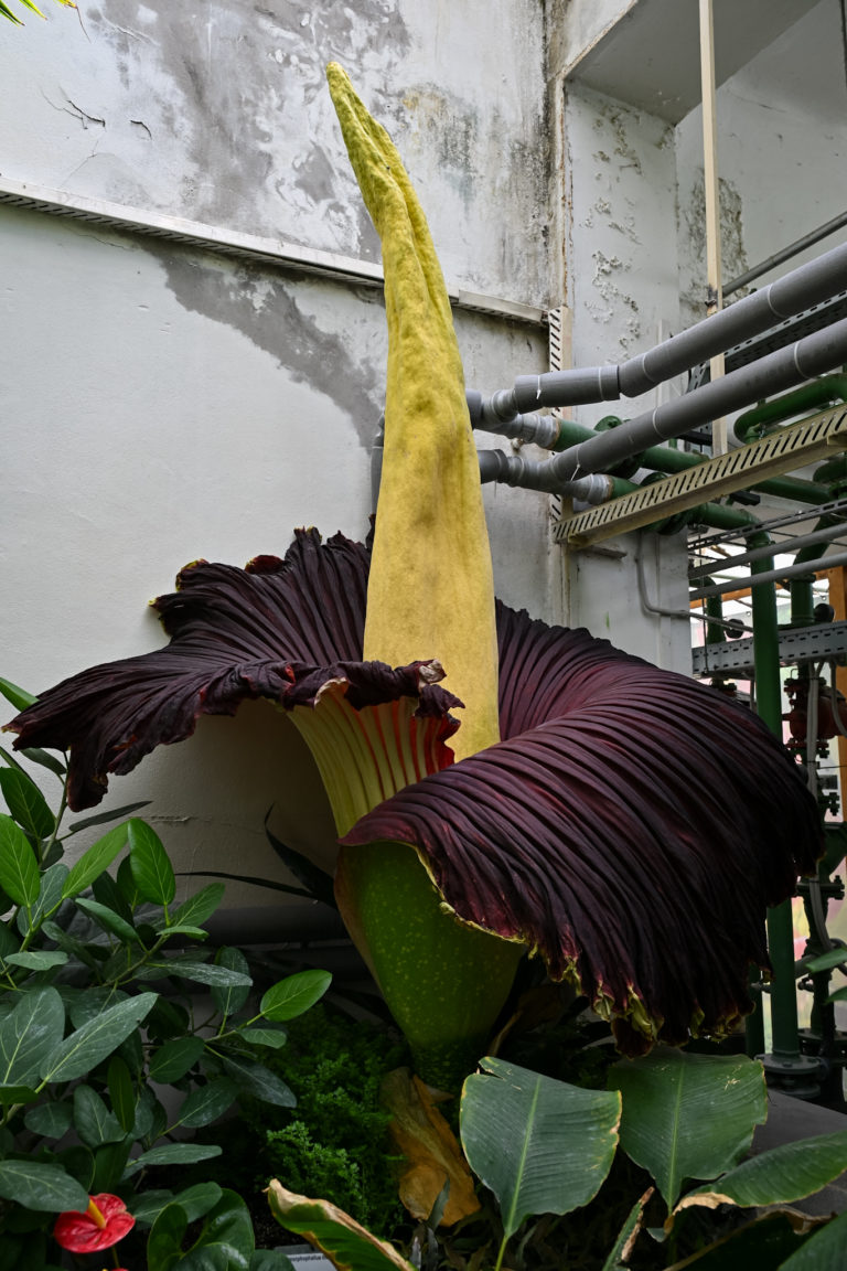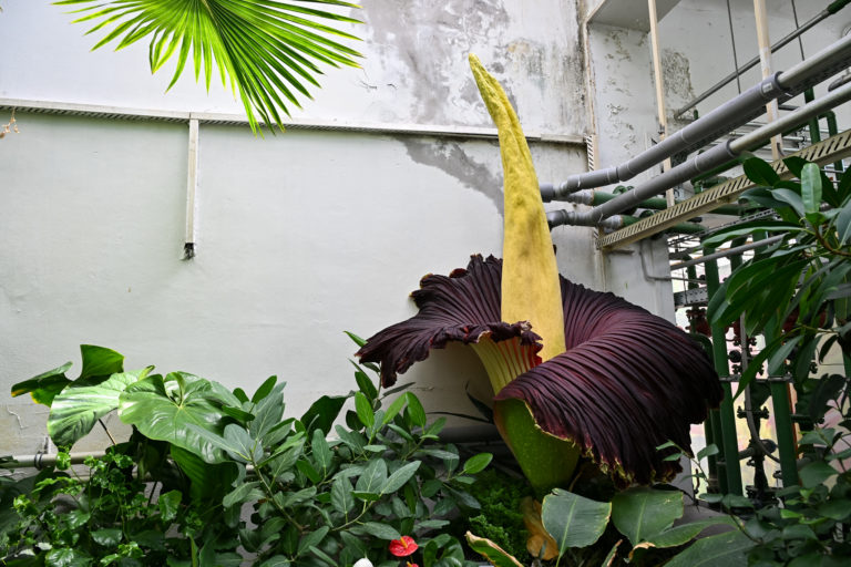 Amorfofalus obrovský (bot. Amorphophallus titanum), ktorý na Slovensku po prvýkrát rozkvitol v skleníku Botanickej záhrady v Bratislave. Bratislava, 7. august 2024. Foto: SITA