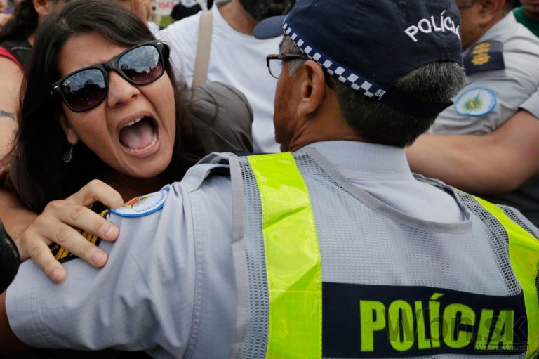 Pár hodín pred otváracím súbojom sa vo štvrtok v Sao Paule strhli pouličné boje demonštrantov s políciou. Viac ako 300 protestujúcich zaplnilo hlavnú cestu k štadiónu. Policajti použili slzný plyn a omračujúce granáty.