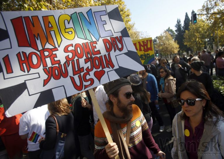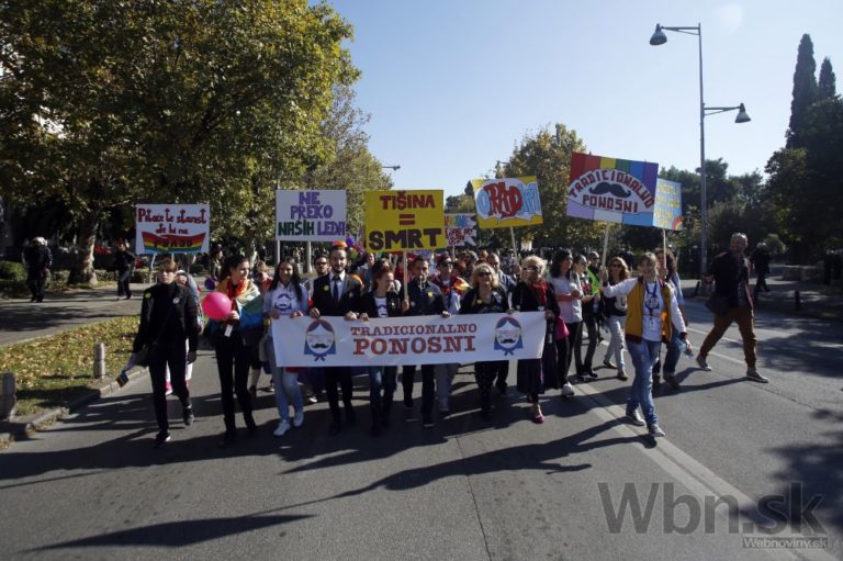 Čierna Hora je známa svojou konzervatívnosťou voči sexuálnym menšinám. Podobný pochod sa tu konal po prvýkrát minulý rok v júli. Účastníkov a policajtov vtedy napadli stovky výtržníkov, Podgorica, Montenegro, 2. Nov., 2014.