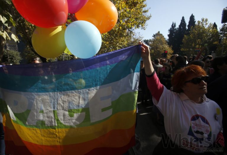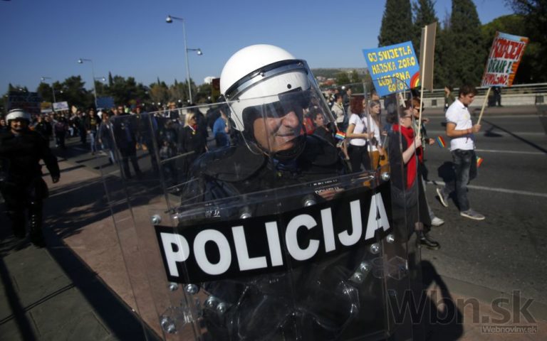 Čierna Hora je známa svojou konzervatívnosťou voči sexuálnym menšinám. Podobný pochod sa tu konal po prvýkrát minulý rok v júli. Účastníkov a policajtov vtedy napadli stovky výtržníkov. Foto: SITA/AP