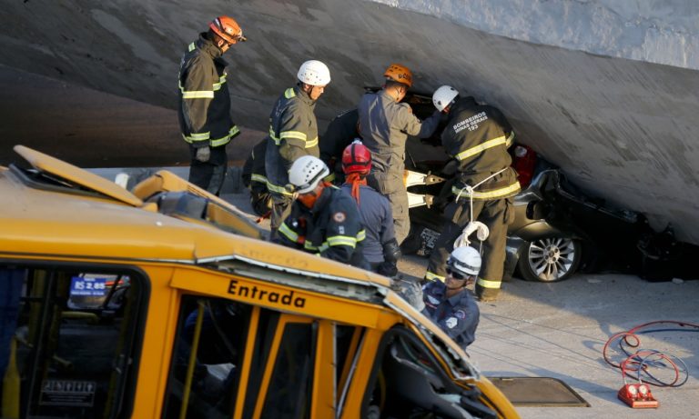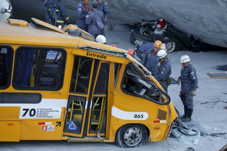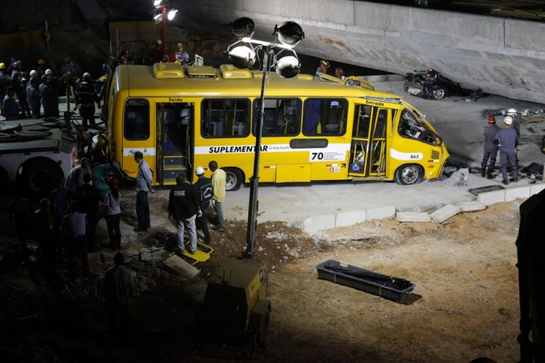 V brazílskom meste Belo Horizonte, ktoré je jedným z dejísk prebiehajúcich MS vo futbale, sa na rušnú cestu zrútil nedokončený nadjazd. Najmenej dvaja ľudia zahynuli a približne dvadsať sa zranilo. Podľa informácií tamojších médií ostalo pod zrútenou mostnou konštrukciou uväznených niekoľko vozidiel vrátane jedného autobusu. Nadjazd neďaleko štadióna Mineirao mal byť hotový do začiatku turnaja. Foto: SITA/AP