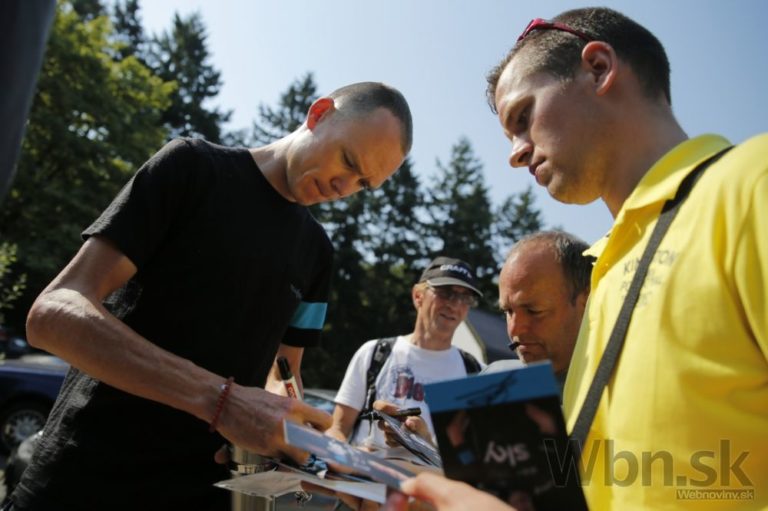 V holandskom Ultrechte sa pred tisíckami fanúšikov Tour de France predstavili jednotlivé cyklistické tímy. Na fotografii Brit Christopher Froome rozdáva podpisy fanúšikom. Holandsko, 2. júla 2015. Foto: SITA/AP
