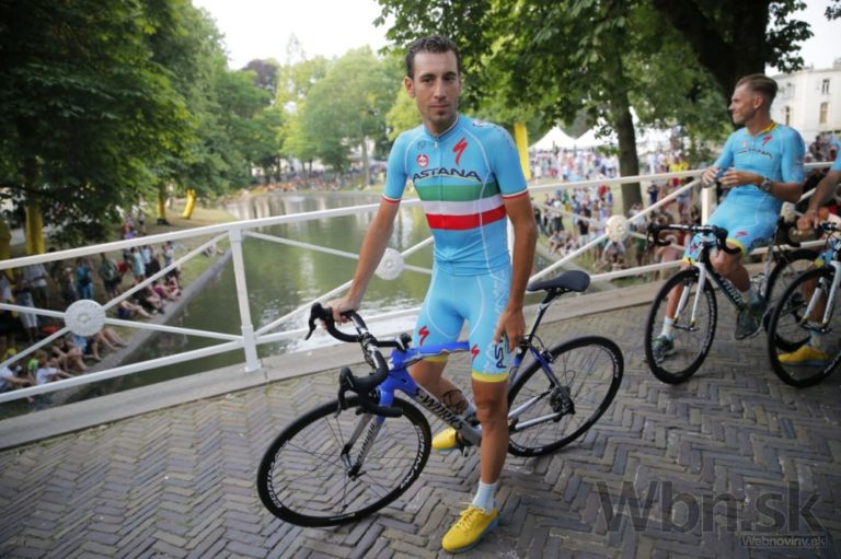 V holandskom Ultrechte sa pred tisíckami fanúšikov Tour de France predstavili jednotlivé cyklistické tímy. Na fotografii Talian Vincenzo Nibali z tímu Astana prichádza na tímovú prezentáciu. Holandsko, 2. júla 2015. Foto: SITA/AP