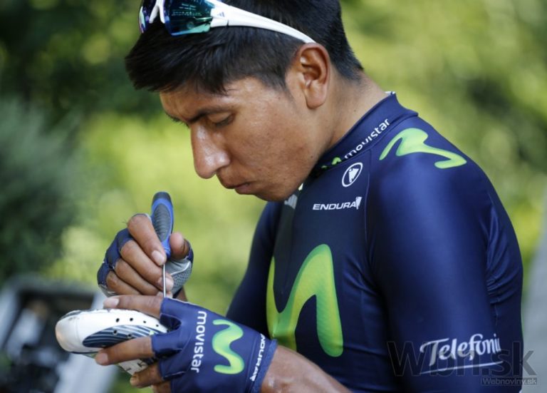 V holandskom Ultrechte sa pred tisíckami fanúšikov Tour de France predstavili jednotlivé cyklistické tímy. Na fotografii Kolumbijčan Nairo Quintana nastavuje svoje cyklistické topánky. Holandsko, 2. júla 2015. Foto: SITA/AP