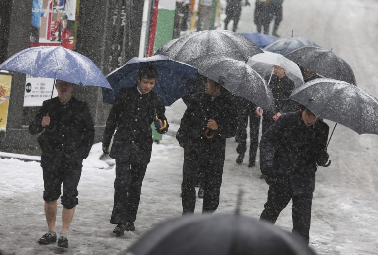 Snehová víchrica, ktorá sa cez víkend prehnala Tokiom a ďalšími časťami Japonska, si vyžiadala 13 mŕtvych a takmer 1700 zranených. Foto: SITA/AP