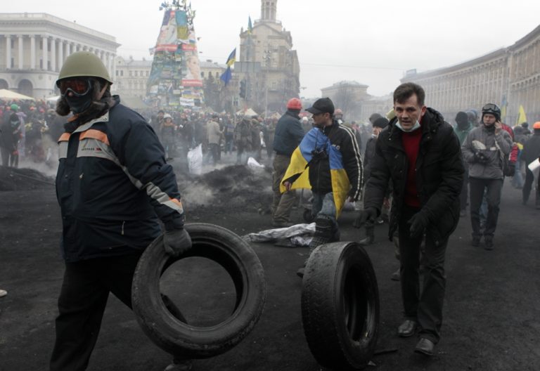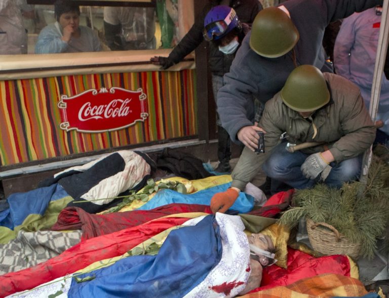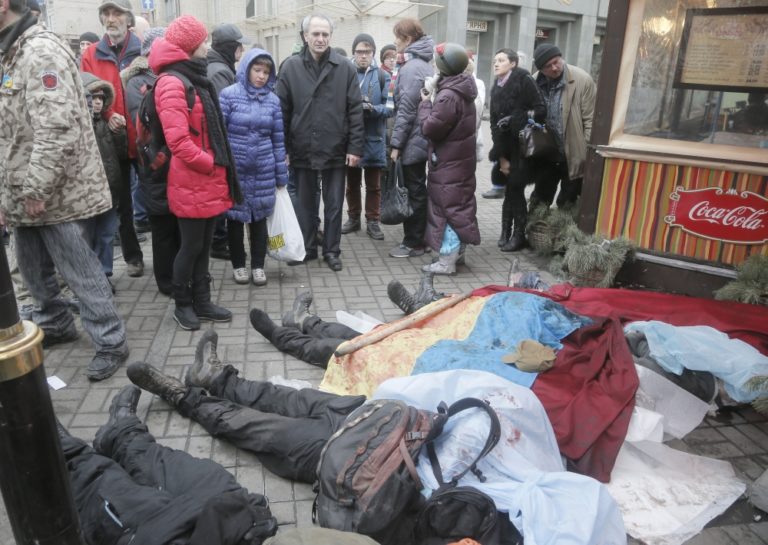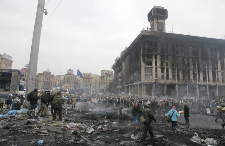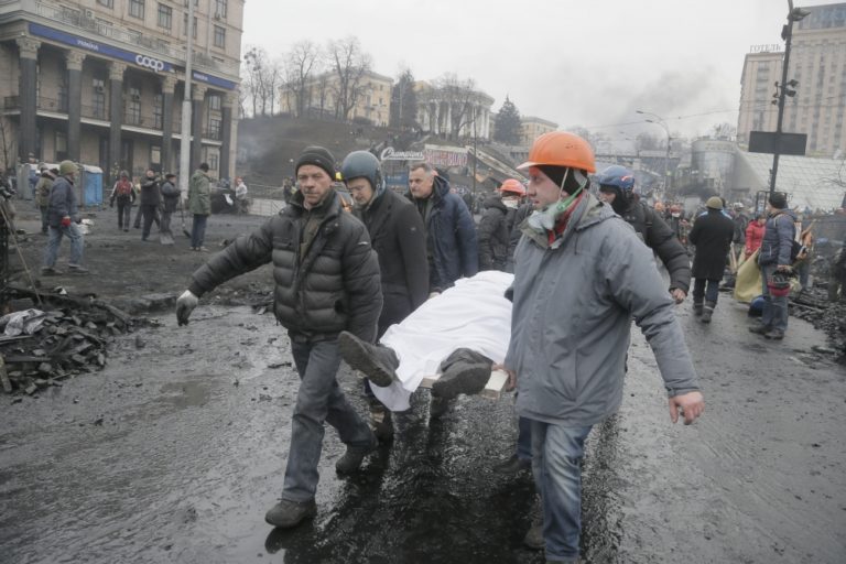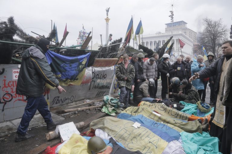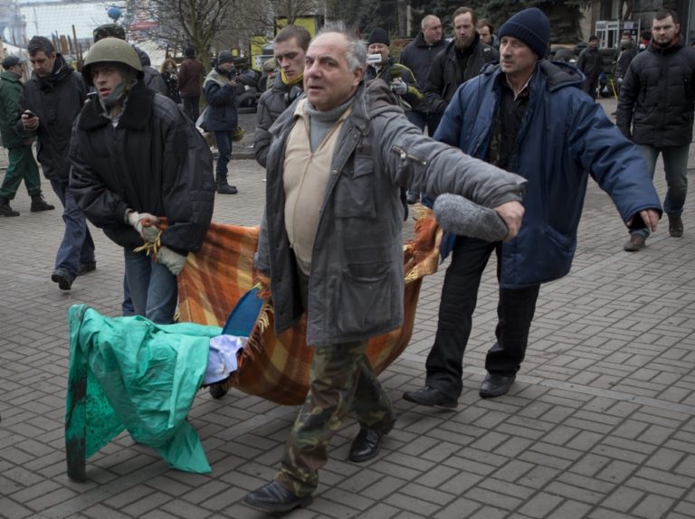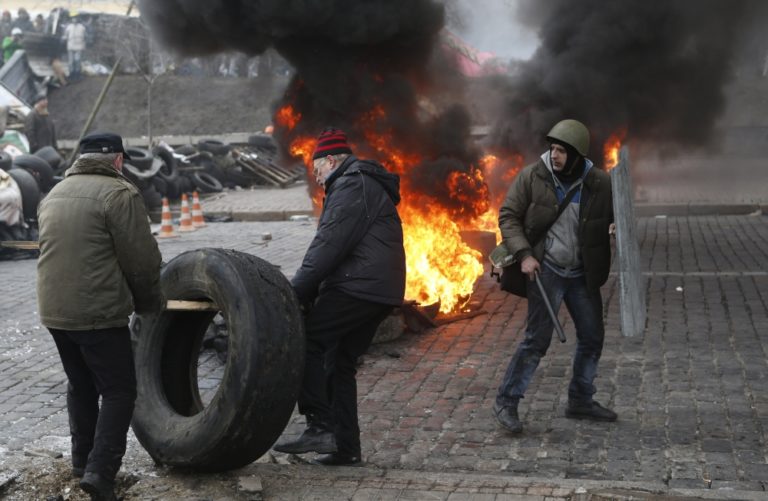 V Kyjeve naďalej panuje napätie. V uliciach sa strieľa a zomierajú tam ľudia. Foto: SITA/AP