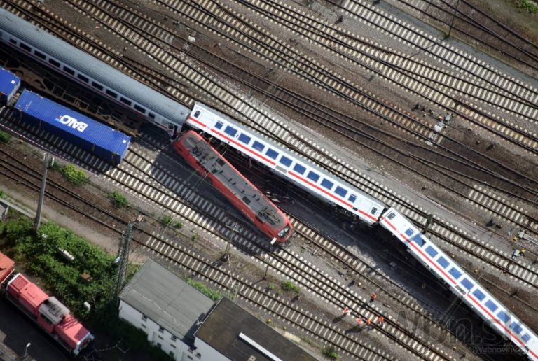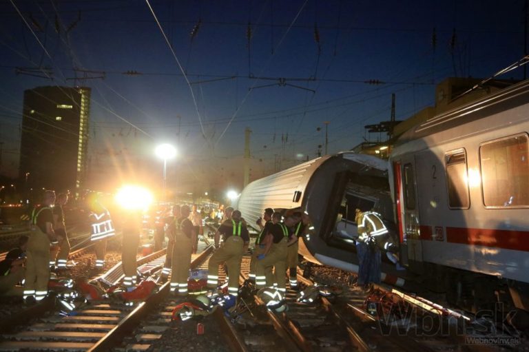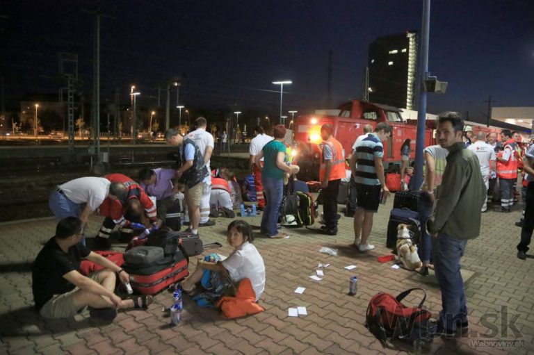 Najmenej 35 ľudí utrpelo zranenia pri zrážke rýchlika a nákladného vlaku na juhu Nemecka. Štyri osoby sú vo vážnom stave, ďalších 14 museli hospitalizovať. Mannheim, 1. augusta 2014. Foto: SITA/AP