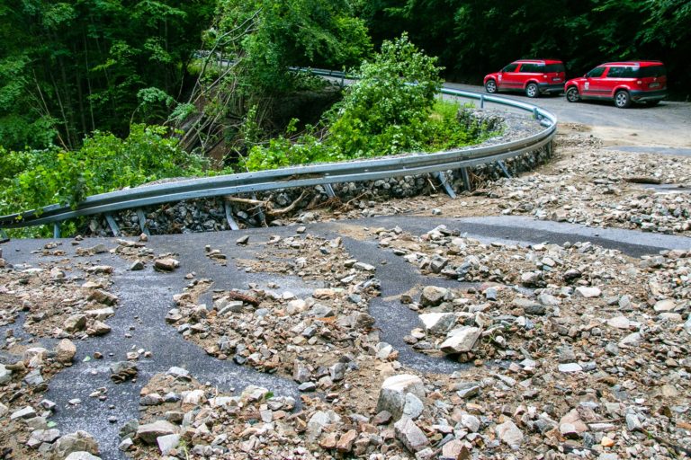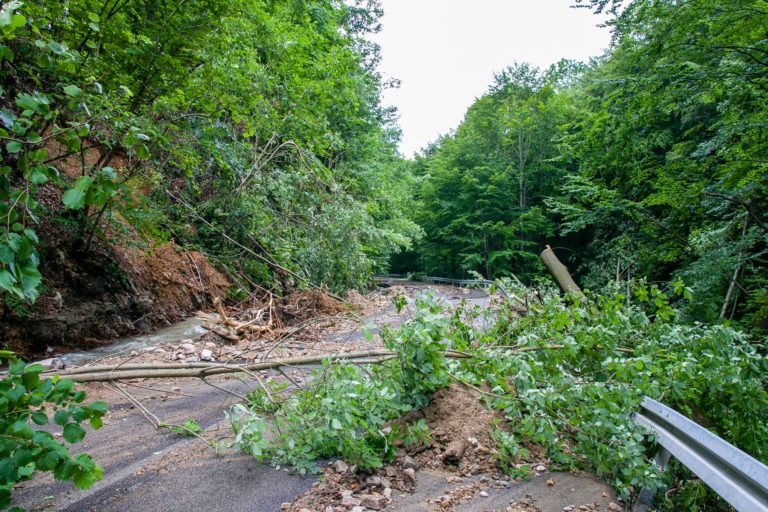 Na niektorých miestach sa odtrhli kusy asfaltu a na cestu popadalo viacero stromov.