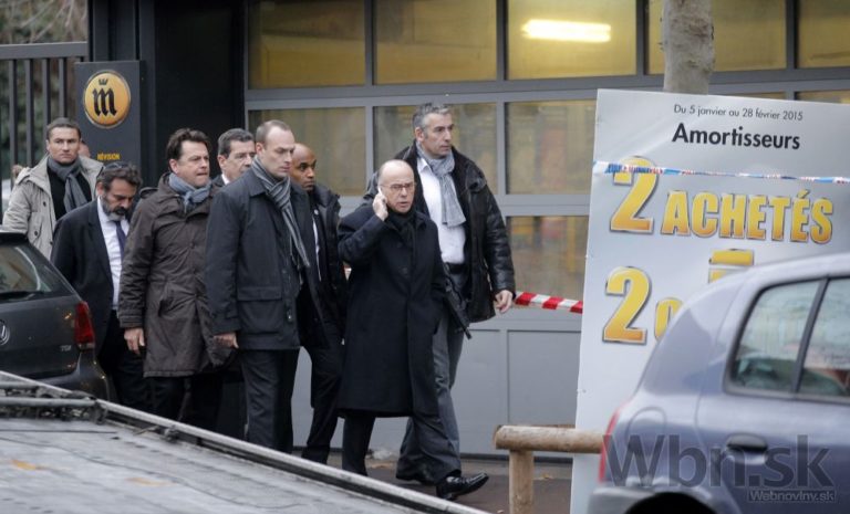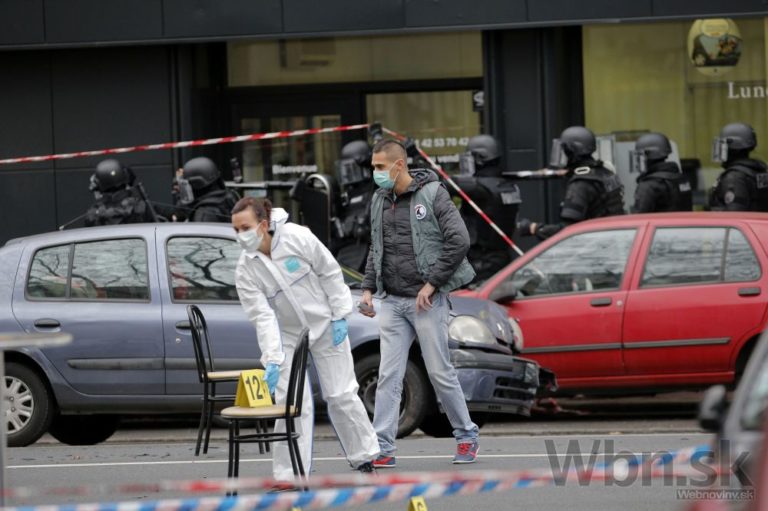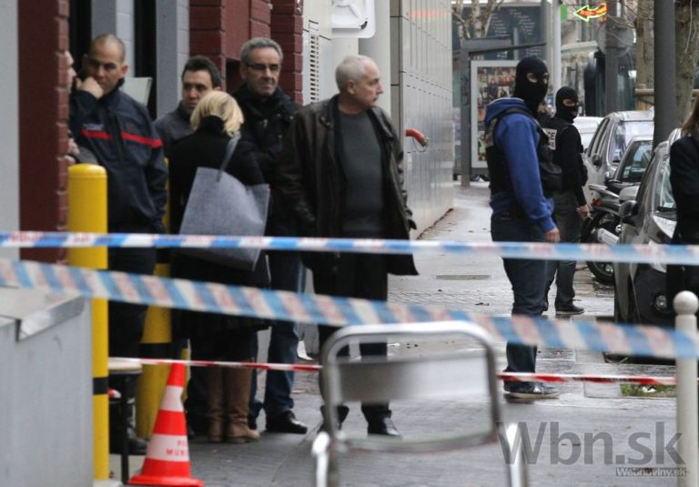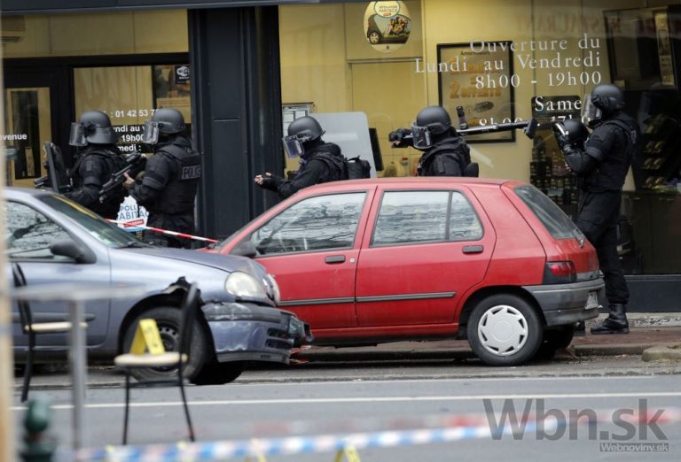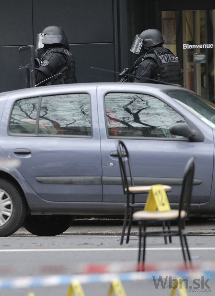Zásah polície, hasičov a záchranárov na mieste štvrtkovej streľby na juhu Paríža. Policajtka, ktorá utrpela ťažké zranenia, zomrela. Jej kolega útok prežil a previezli ho do nemocnice s vážnymi zraneniami.Paríž, 8. január 2015. Foto: SITA/AP