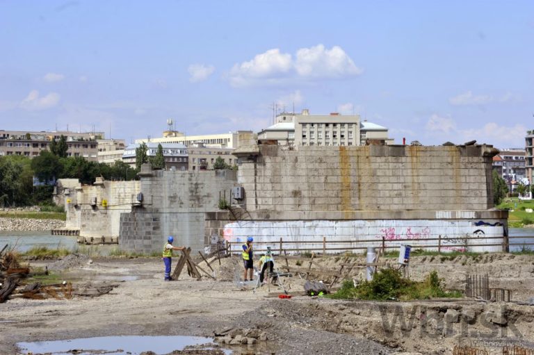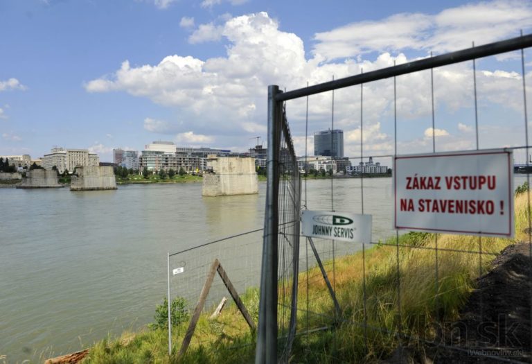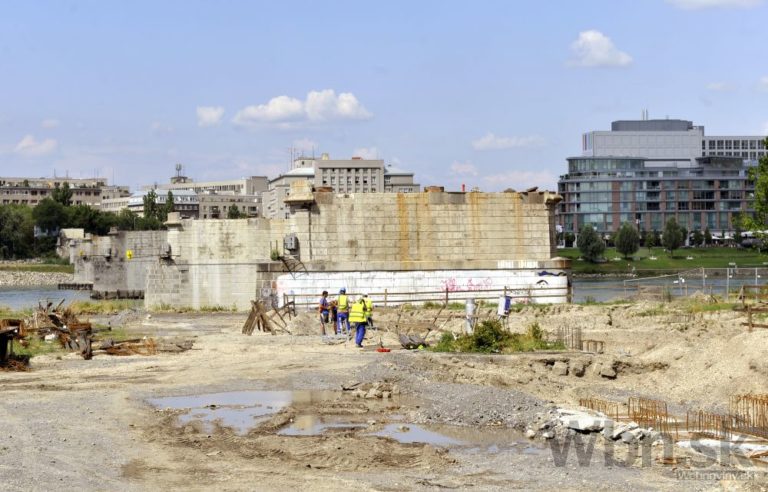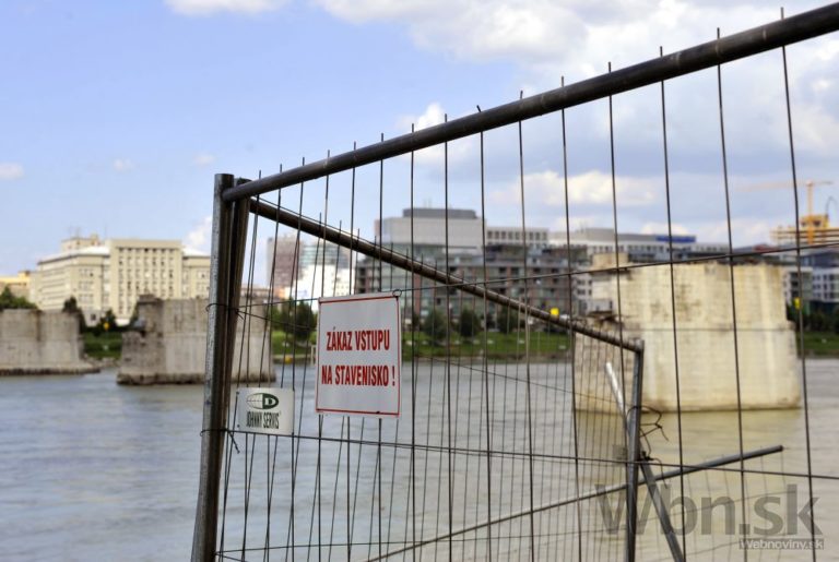 Pohľad na postup rekonštrukčných prác na Starom moste a výstavbu električkovej trate do Petržalky. Bratislava, 23. júl 2014. Foto: SITA/Ján Slovák