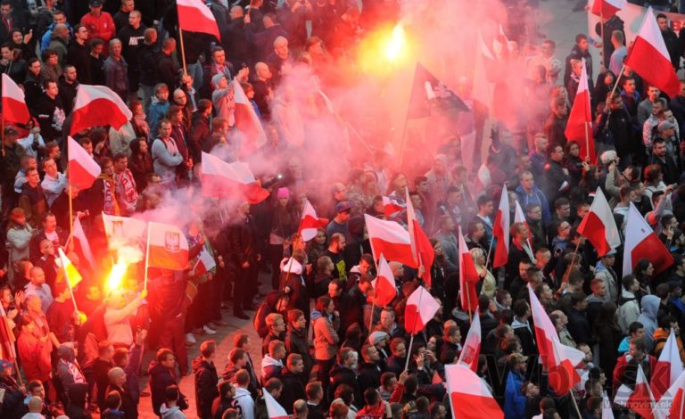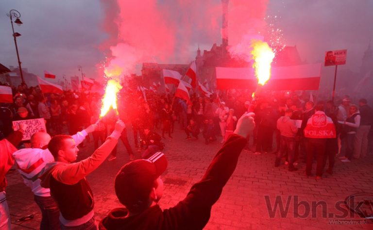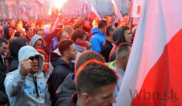 Demonštranti v Poľsku skandovali Celé Poľsko spieva s nami, Stop islamizácii Európy a tiež vulgárne slová namierené proti Európskej únii. Foto: SITA/AP