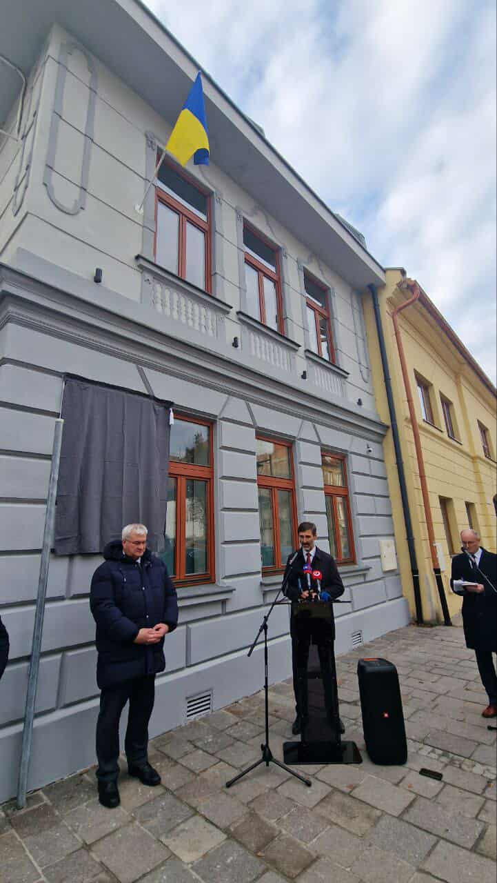 V Prešove v piatok minister zahraničných vecí a európskych záležitostí SR Juraj Blanár spoločne s ministrom zahraničných vecí Ukrajiny Andrijom Sybihom slávnostne otvorili Generálny konzulát Ukrajiny. Foto: SITA/Ivan Kriššák