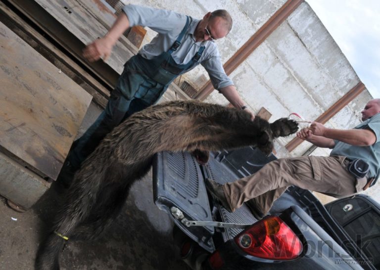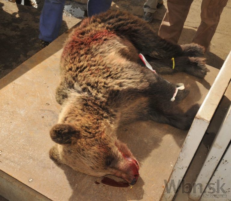 Poľovníci dnes o 7:35 zastrelili zatúlanú medvedicu v súkromných záhradách na Športovej ulici v Prešove pri mestskej hale. Ide o prvého medveďa uloveného na území Prešova. Medvedica mala asi sedem rokov a vážila okolo 100 kilogramov. V okolí Prešova sa potulovala asi od nedele. Prešov, 14. august 2014. Foto: SITA/Viktor Zamborský