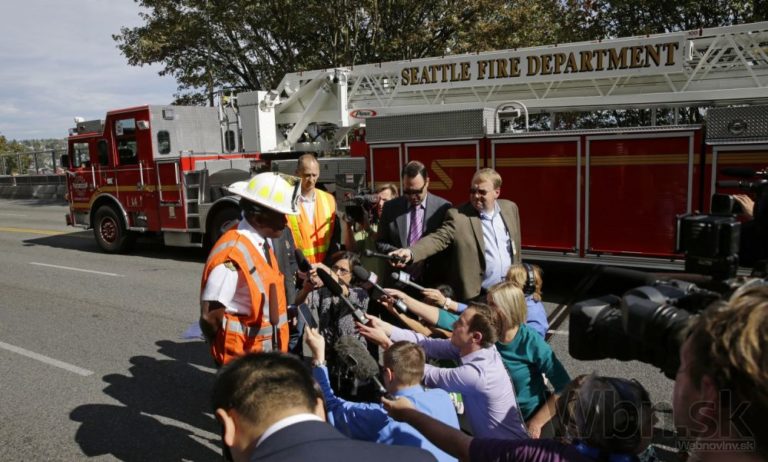 Pri nehode dvoch autobusov Seattli zahynuli štyria ľudia a ďalších 44 osôb utrpelo zranenia. K zrážke medzi turistickým obojživelným autobusom a vozidlom vezúcim zahraničných študentov došlo na rušnom Moste Georgea Washingtona nad vodným kanálom spájajúcim jazero Union s Pugetovým zálivom. Seattle, 24. september 2015. Foto: Ken Lambert/The Seattle Times via AP