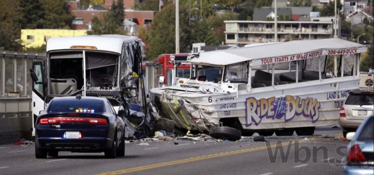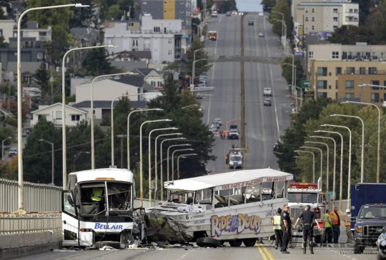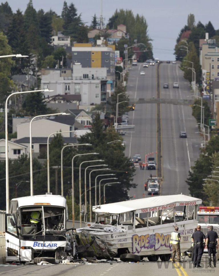Pri nehode dvoch autobusov Seattli zahynuli štyria ľudia a ďalších 44 osôb utrpelo zranenia. K zrážke medzi turistickým obojživelným autobusom a vozidlom vezúcim zahraničných študentov došlo na rušnom Moste Georgea Washingtona nad vodným kanálom spájajúcim jazero Union s Pugetovým zálivom.