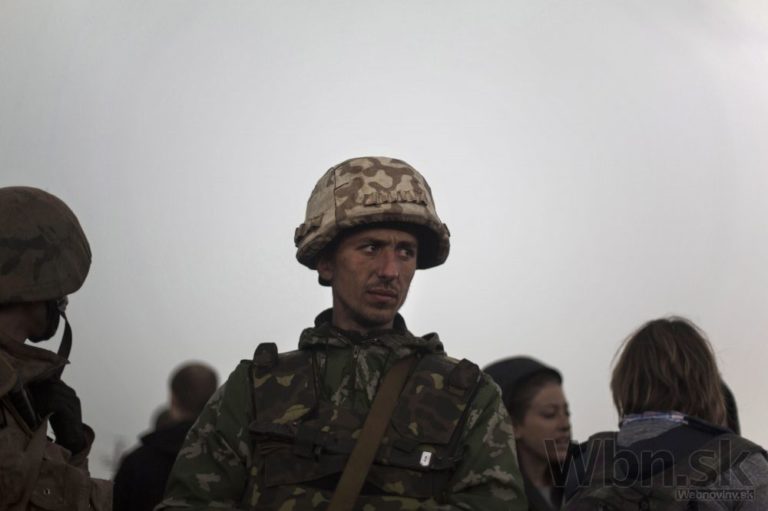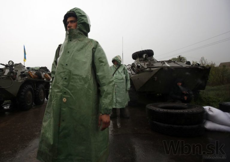 Ukrajinskí vojaci hliadkujú na hraniciach Slovjansku. Ukrajina, Slovjansk, 2. mája 2014 Foto: SITA/AP