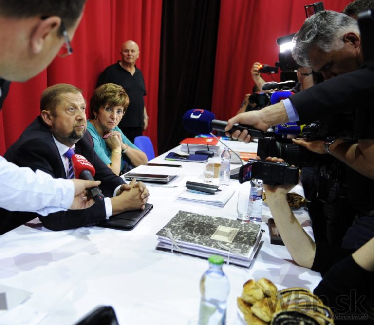 Zľava: Kandidáti na predsedu najvyššieho súdu Jana Bajánková a Štefan Harabin na zasadnutí Súdnej rady, ktorá má zvoliť nového šéfa Najvyššieho súdu SR v kultúrnom dome v Sobranciach. Sobrance, 19. máj, 2014. Foto: SITA/Ivan Fleischer
