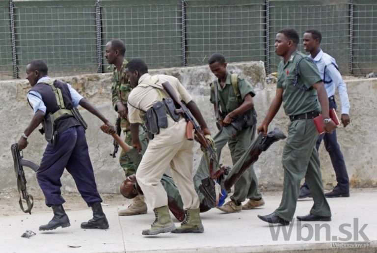 Islamistickí extrémisti napojení na teroristickú sieť al-Kájda v sobotu zaútočili na sídlo parlamentu v somálskom hlavnom meste Mogadišo. Útok si vyžiadal aj životy miestnych policajtov. Somálsko, Mogadišu, 24. mája 2014.