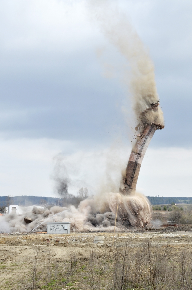 Na odstránenie komína použili 18 kilogramov trhavín a 60 rozbušiek.