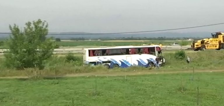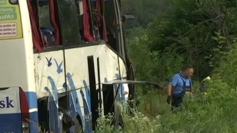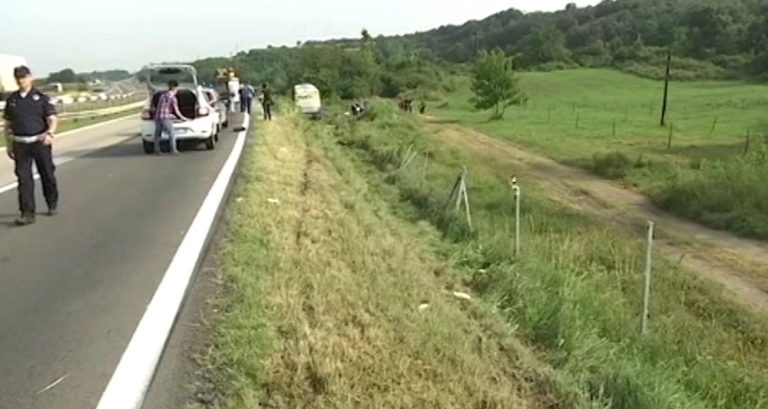 Miesto havárie autobusu pri meste Aleksinac v Srbsku. Autobus s turistami sa vracal z gréckeho ostrova Korfu a na diaľnici Niš – Belehrad neďaleko dedinky Bobovište zišiel z cesty a prevrátil sa. Bolo v ňom 29 cestujúcich a dvaja vodiči. Srbsko, Aleksinac, 21. jún 2016.
