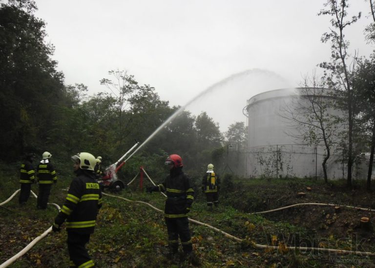 V stredu sa uskutočnilo taktické požiarne cvičenie v areáli chemického závodu v Strážskom (okres Michalovce). Strážske, 22. október 2014. Foto: SITA/Energochemica