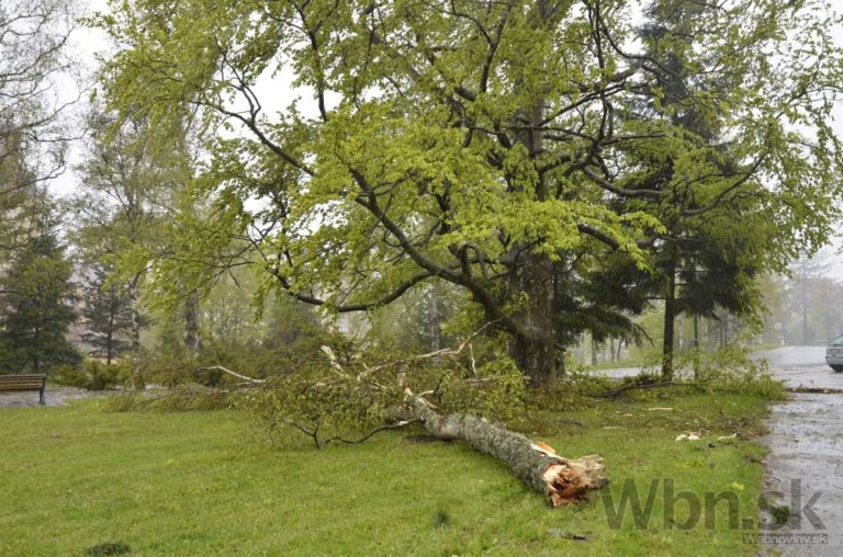 Divoké počasie sužuje oblasť severného Slovenska. Vietor láme stromy, ktoré končia priamo na cestách, niektoré dokonca už zasiahli aj autá. Na snímke: Následky víchrice v Starom Smokovci. Vysoké Tatry, 15. máj 2014.