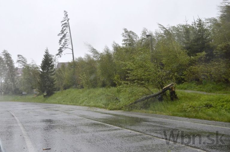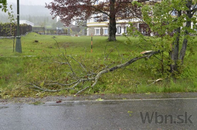 Divoké počasie sužuje oblasť severného Slovenska. Vietor láme stromy, ktoré končia priamo na cestách, niektoré dokonca už zasiahli aj autá. Na snímke: Situácia na ceste zo Starého Smokovca do Tatranskej Lomnice. Vysoké Tatry, 15. máj 2014. Foto: SITA/Radoslav Maťaš