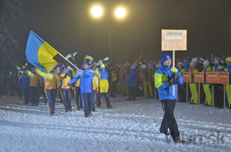 Výprava z Ukrajiny počas slávnostného otvorenia Svetovej zimnej univerziády – Štrbské Pleso a Osrblie. Štrbské Pleso, 24. január 2015. Foto: SITA/Radoslav Maťaš