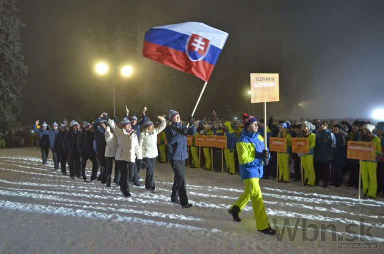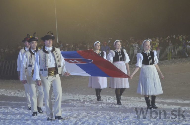 Slovenská vlajka počas slávnostného otvorenia Svetovej zimnej univerziády – Štrbské Pleso a Osrblie. Štrbské Pleso, 24. január 2015. Foto: SITA/Radoslav Maťaš
