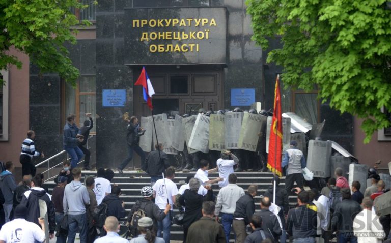 Proruskí aktivisti obsadili v piatok 1. mája ďalšie vládne budovy, tentoraz v Donetsku. Počas protestov došlo k zrážke s políciou a mnohí ľudia sa zranili.