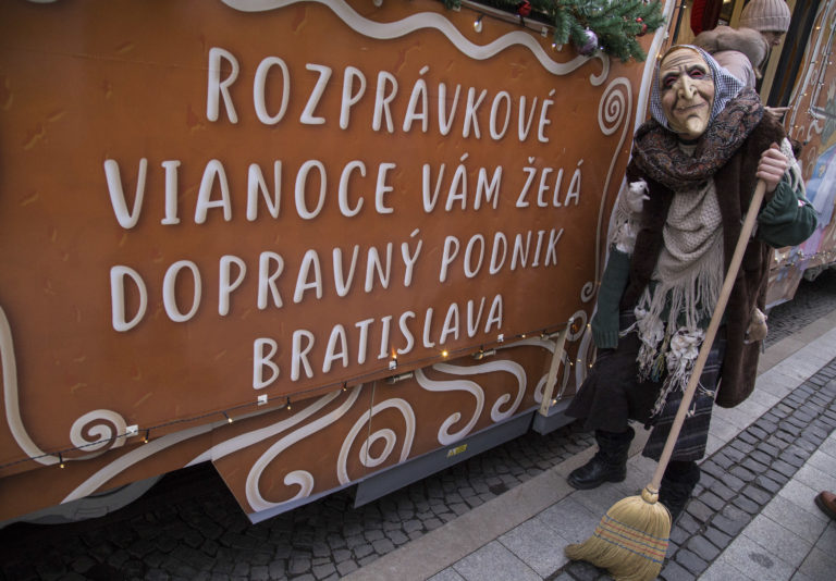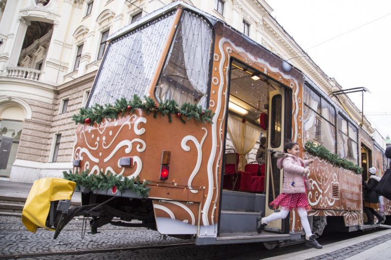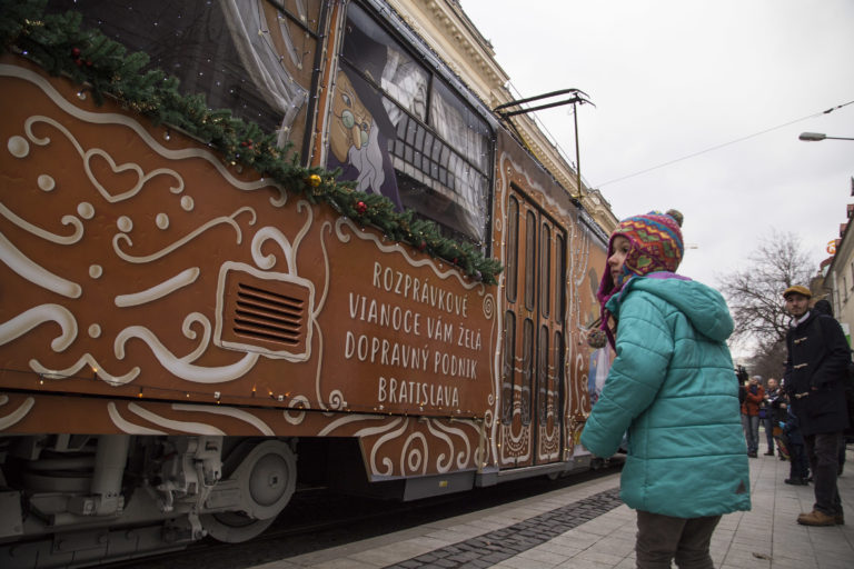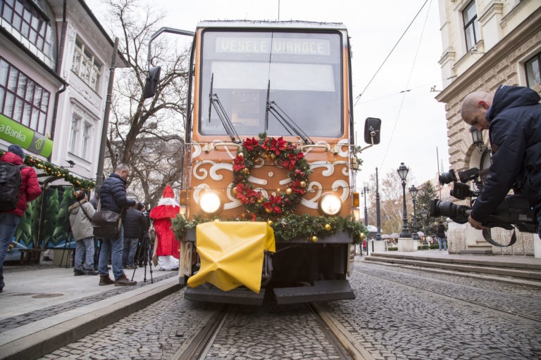 Atmosféra počas vypravenia vysvietenej vianočnej električky do ulíc Bratislavy. Bratislava, 6. december 2017. Foto: SITA/Branislav Bibel.