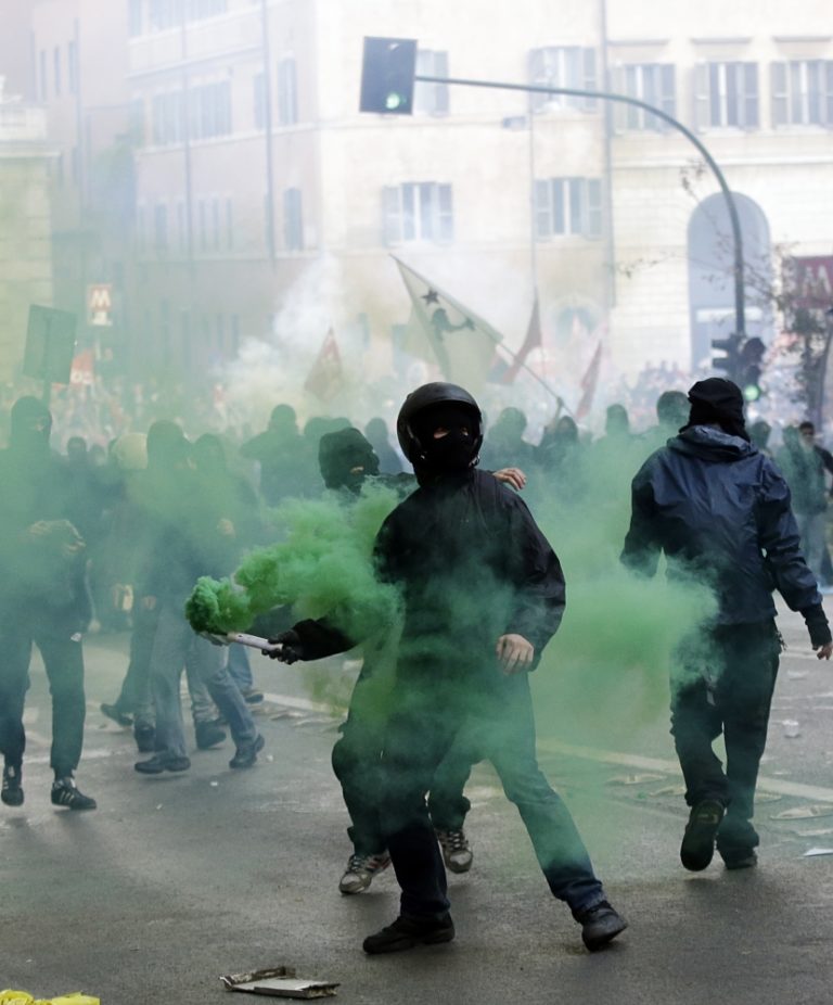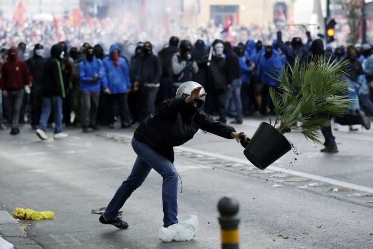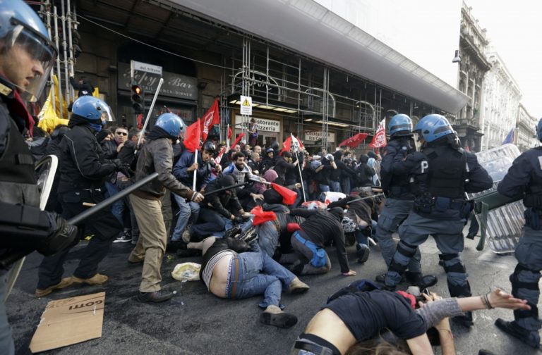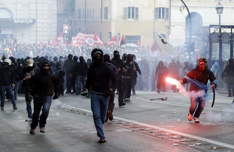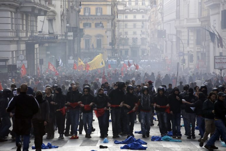 Demonštrácie zvolali krajne ľavicové skupiny. Kým podujatie v Paríži sa obišlo bez násilností, Rím hlásil niekoľko zranených a zatknutých po zrážkach s políciou.