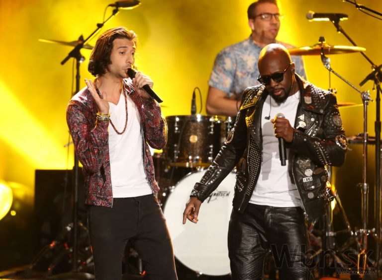 Nasri a Wyclef Jean z hudobnej skupiny Magic na 42. ročníku odovzdávania American Music Awards v Nokia Theatre, 23. Nov. 2014, Los Angeles. Foto: SITA/AP