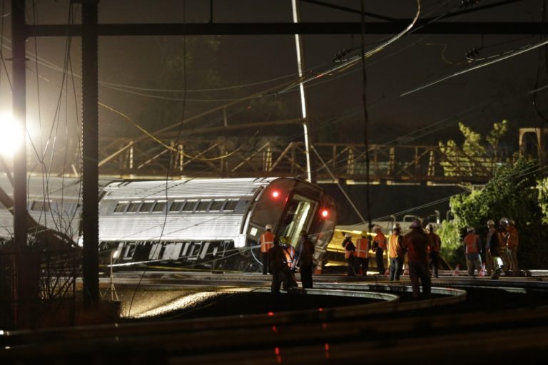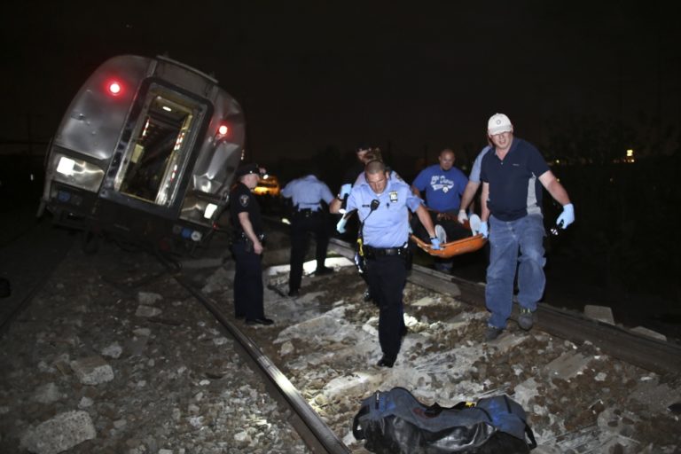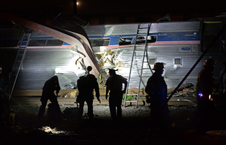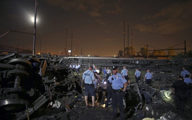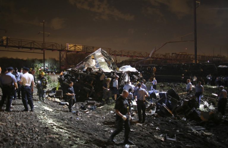 Vozne sú po vykoľajení úplne zničené a podľa svedkov pripomínajú kopu železa. Foto: SITA/ AP