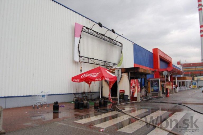 Pri supermarkete v Žiline explodovala v stánku s občerstvením propán-butánová fľaša. Príčiny výbuchu zisťujú. Zranenia utrpel muž, ktorý pracoval ako predavač. Žilina, 16. október 2014.