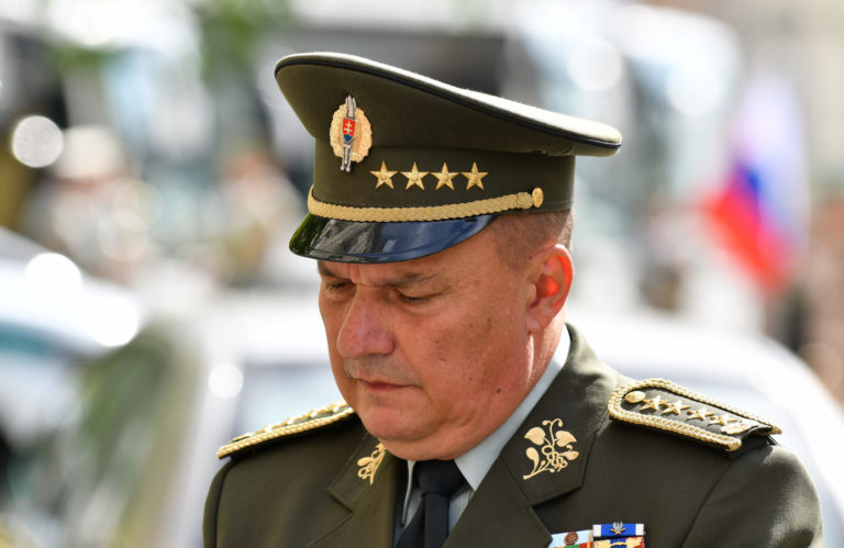 Náčelník Generálneho štábu OS SR Daniel Zmeko počas príchodu na Veliteľské zhromaždenie náčelníka Generálneho štábu Ozbrojených síl (OS) SR v priestoroch historickej budovy Národnej rady SR. Bratislava, 7. júl 2022. Foto: SITA/Martin Medňanský