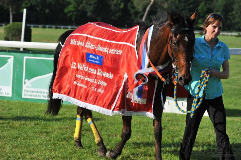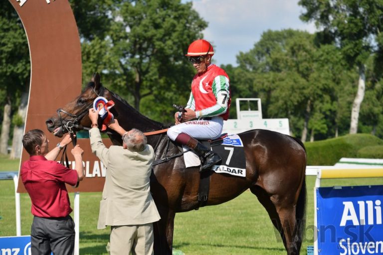 Víťaz ceny Allianz - Slovenskej poisťovňe - 31. Starohájske kritérium (rovina 2000 m) kôň Aldar počas 7. mítingu sezóny XXXVII. ročníka Turf-gala. Bratislava, 7. jún 2015 Foto: SITA/Robert Tappert