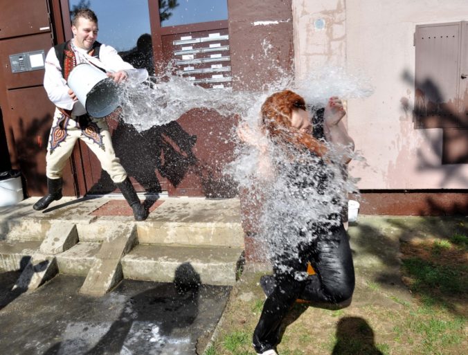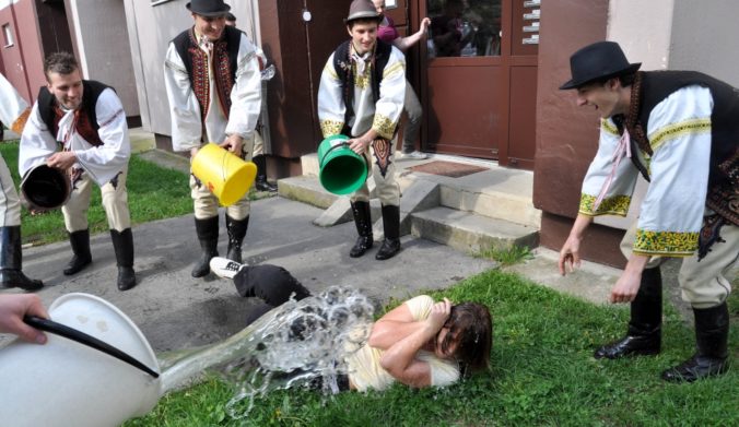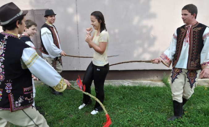 Tradičná oblievačka v Trenčianskej Teplej (okr. Trenčín). Foto: SITA/Tomáš Somr