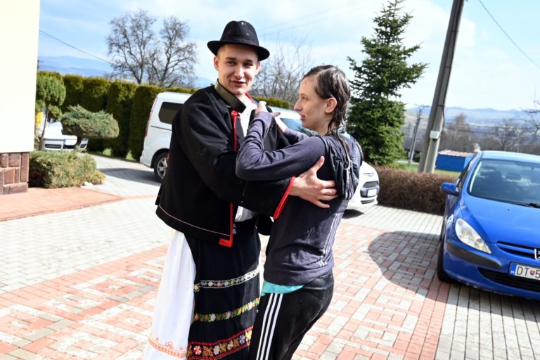 Atmosféra počas tradičnej oblievačky a šibačky na Veľkonočný pondelok v obci Trenčianska Teplá. Trenčianska Teplá, 10. apríl 2023. Foto: SITA/Tomáš Somr.