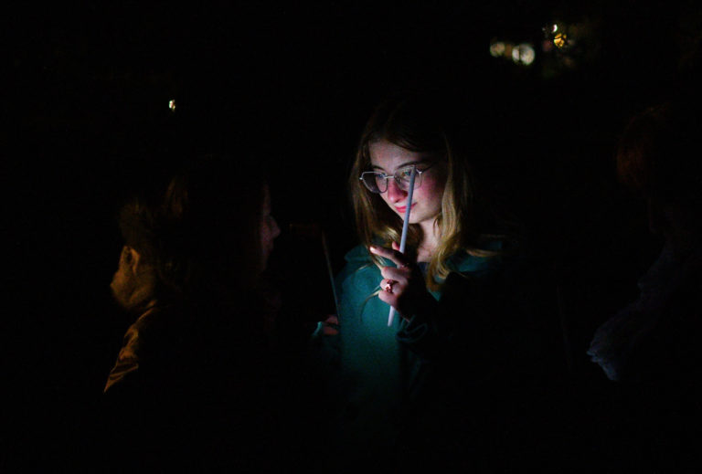 Atmosféra počas Veľkonočnej omše v rámci Bohoslužby svetla - Lucenarium na priestranstve pred barokovým rímsko-katolíckym kostolom Návštevy Panny Márie u Alžbety z roku 1757 v obci Hrachovište. Hrachovište, okr. Nové Mesto nad Váhom, 30. marec 2024. Foto: SITA/Martin Medňanský