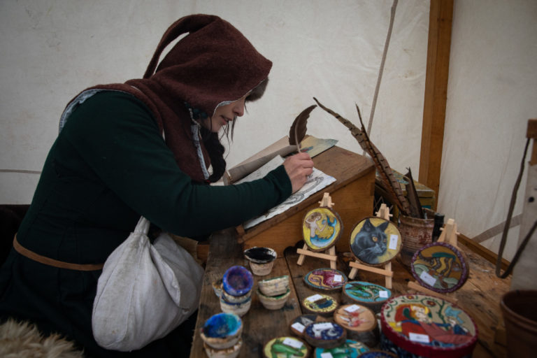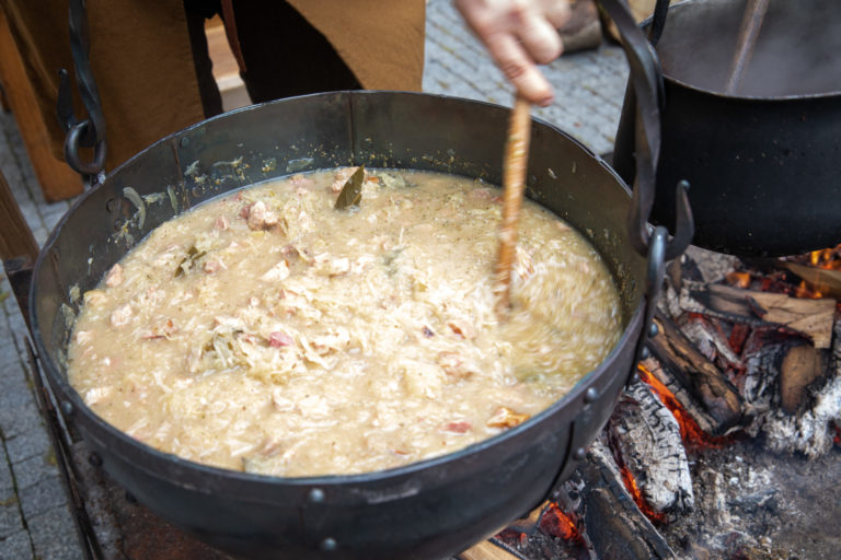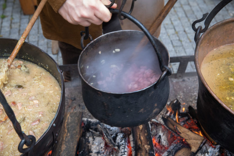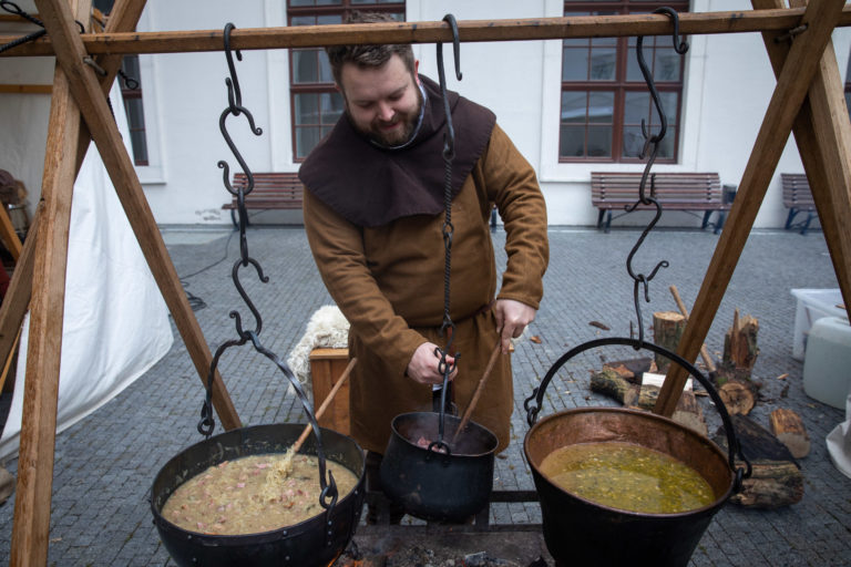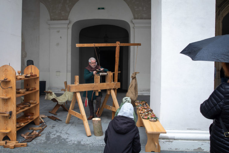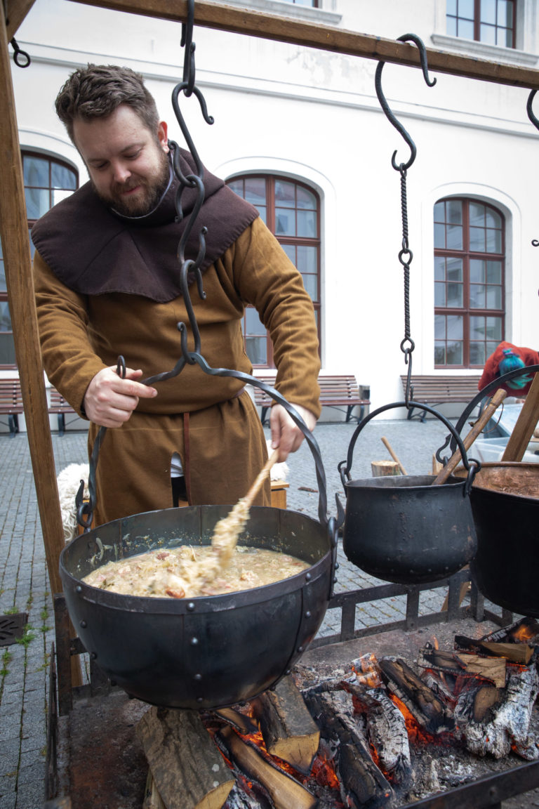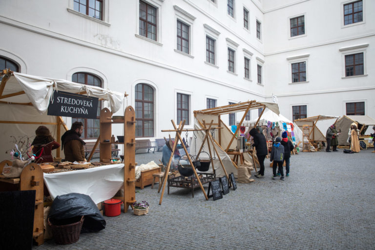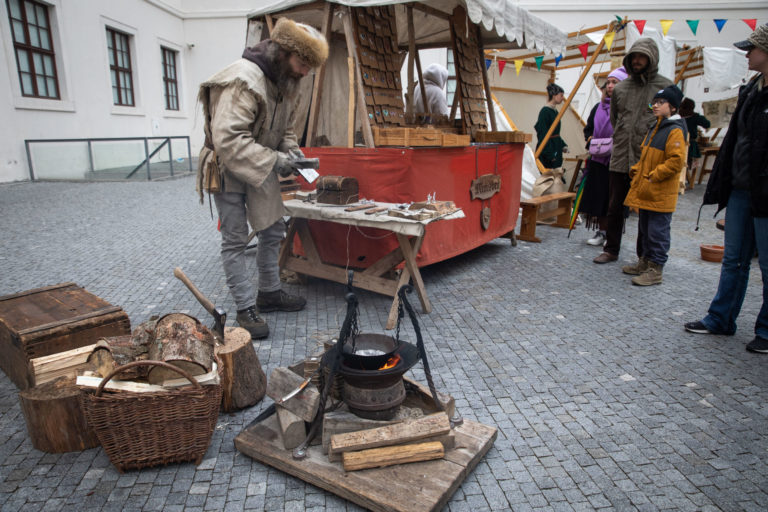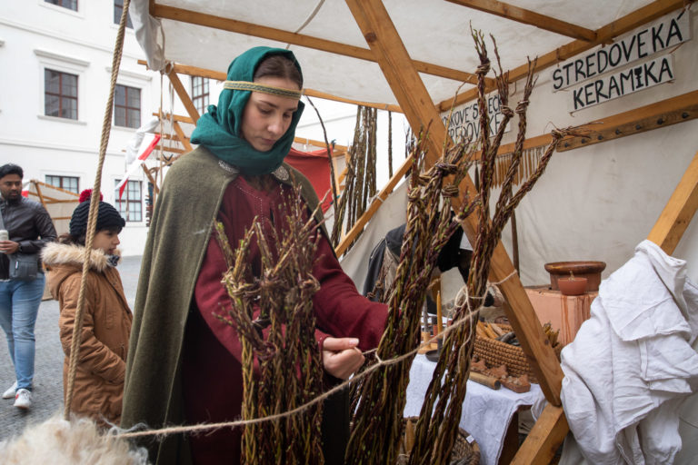 Atmosféra počas Veľkonočných stredovekých remeselných trhov ukazujú tradičnú výrobu pokrmov a výrobkov na nádvorí Bratislavského hradu. Bratislava, 8. apríl 2023. Foto: SITA/Diana Černáková