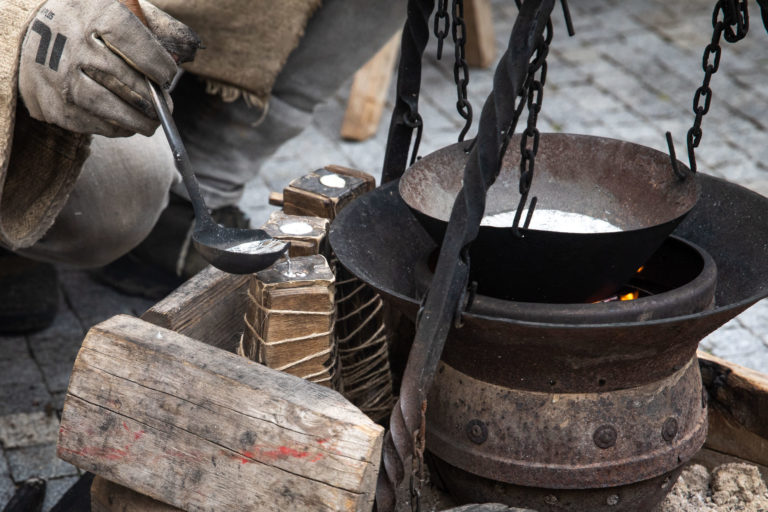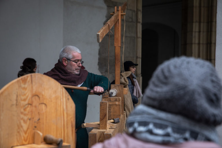Remeselníci počas Veľkonočných stredovekých remeselných trhov ukazujú tradičnú výrobu pokrmov a výrobkov na nádvorí Bratislavského hradu. Bratislava, 8. apríl 2023. Foto: archívne, SITA/Diana Černáková