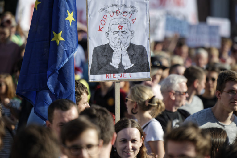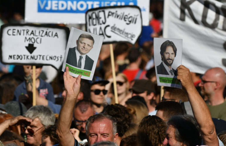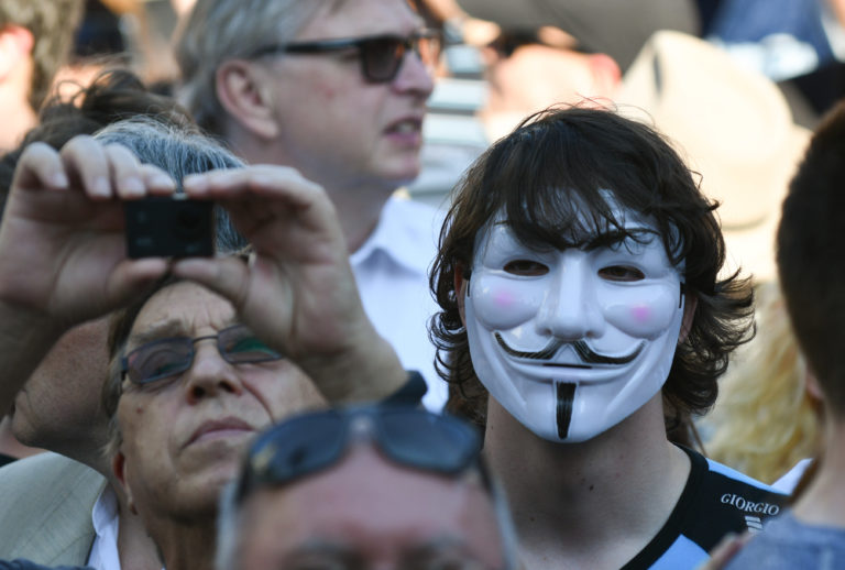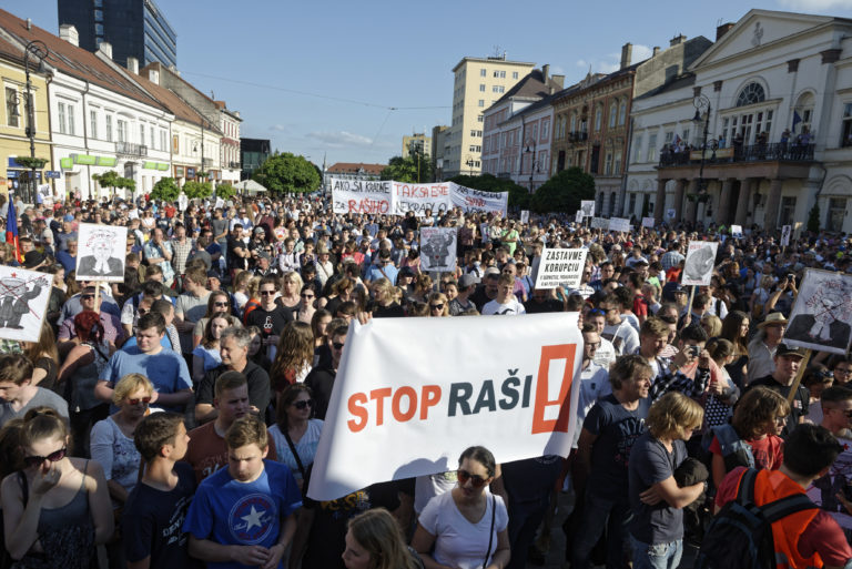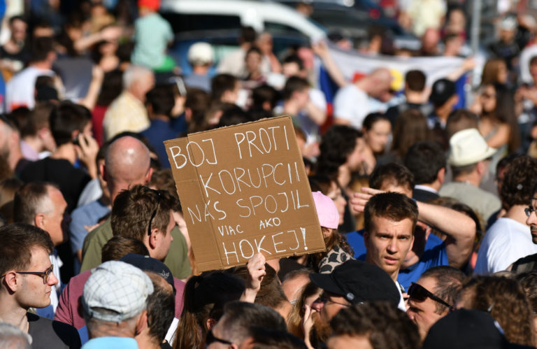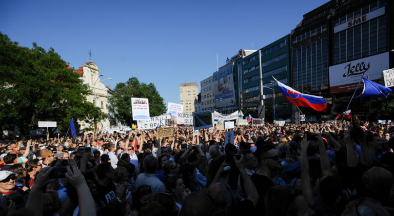 Účastníci Veľkého protikorupčného pochodu II. na Námestí SNP. Bratislava, 5. jún 2017. Foto: SITA/Martin Medňanský