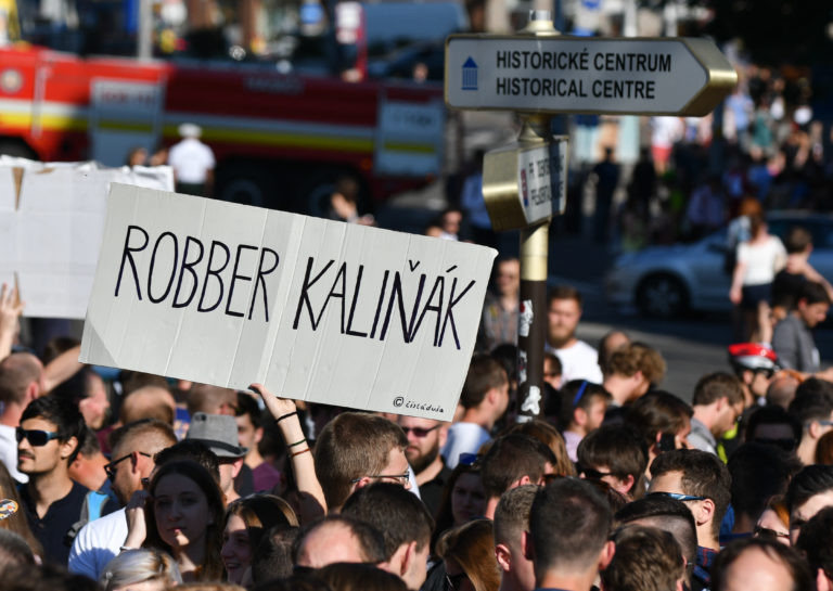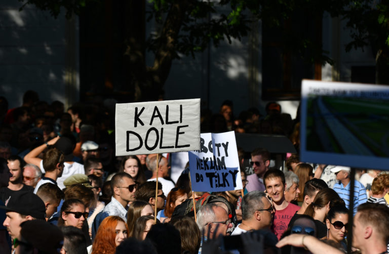 Účastníci Veľkého protikorupčného pochodu II. prechádzajú Kollárovým námestím. Bratislava, 5. jún 2017. Foto: SITA/Martin Medňanský