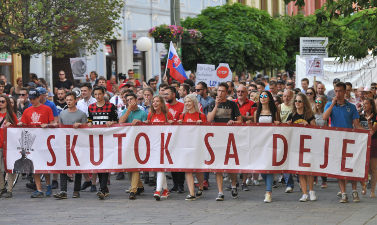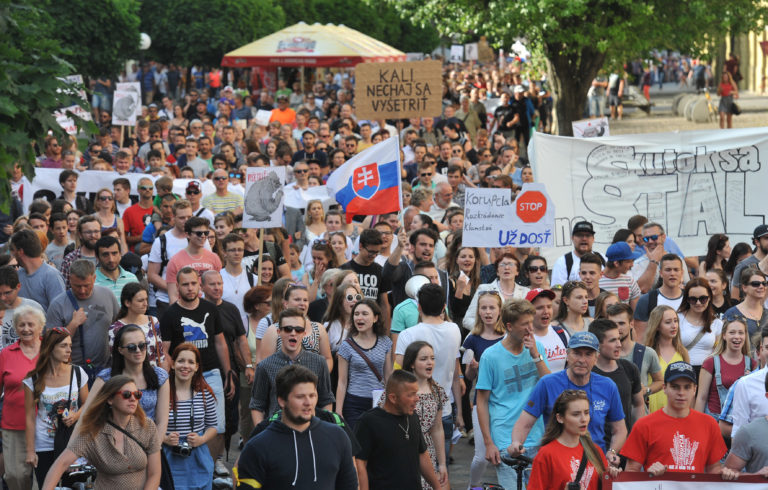 Účastníci Veľkého protikorupčného pochodu v Prešove. Prešov, 12. jún 2017. Foto: SITA/Viktor Zamborský