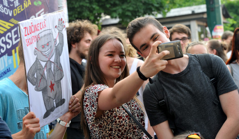 Účastníci pred začiatkom Veľkého protikorupčného pochodu v Prešove. Prešov, 12. jún 2017. Foto: SITA/Viktor Zamborský.