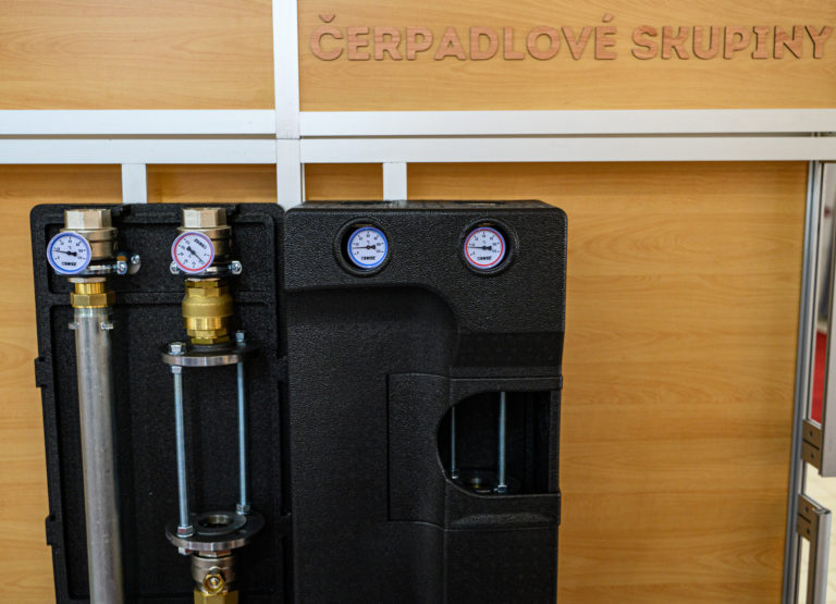 Čerpadlové skupiny pre vykurovacie systémy počas 22. ročníka Medzinárodného odborného veľtrhu vykurovacej, ventilačnej, klimatizačnej, meracej, regulačnej, sanitárnej a ekologickej techniky Aquatherm Nitra v národnom výstavisku Agrokomplex v Nitre. Nitra, 7. február 2023. Foto: SITA/Martin Havran
